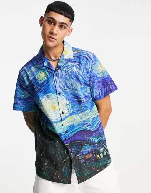 Asos Design Locker Geschnittenes Hemd Mit Van Gogh Kunstwerkmotiv Und Reverskragen Asos